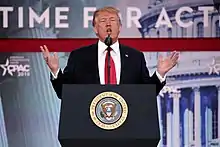 Following the election of former president Donald Trump, his administration pursued means of preventing federal staff from speaking publicly, with the American Association for the Advancement of Science, "the largest scientific society in the world", warning of possible "censorship and intimidation" of the American scientific community.[34] The Trump administration ordered the Environmental Protection Agency to scrub climate change information from their website, instructed that all studies by EPA and the United States Department of Agriculture be reviewed by political appointees before publication, and in some cases issued de facto gag orders to agencies who conduct research.[35] The White House had also denied access to a select group of media outlets including The New York Times, CNN, BBC and The Guardian during a press gaggle while allowing right-wing outlets and blogs to participate, with the National Press Club describing the move as "unconstitutional censorship."[36]