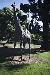 Albert Guibara sculpted a life-size giraffe statue by brazing copper plates together, named Leon, in honor of his father's 80th birthday.[17] It was installed in 1978 and can be seen on the park's northeast lawn, by the corner of 5th and Laurel (37°33′46″N 122°19′20″W / 37.5628°N 122.3222°W).