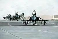 Three U.S. Air Force McDonnell Douglas F-4E Phantom II aircraft parked at Shiraz Air Base, Iran, during exercise Cento, 1 August 1977