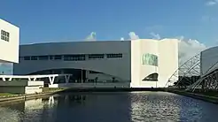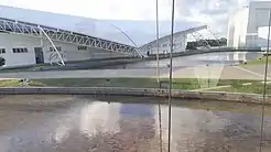 This structure has the capacity to house up to 9 thousand people, was inserted inside an artificial lake with depth of 60 cm and is interconnected to the block of the Mirante Tower through covered walkway. Its plant is formed by 4 arcs of circumference, forming a sophisticated and busy construction.[2]