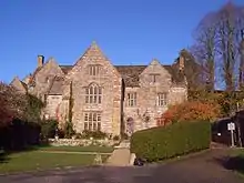 In Buildings of England, Nikolaus Pevsner claims that the Abbey Farm House, which was rebuilt after a fire in the mid-1700s, was formerly the main gateway to the abbey. When rebuilt, the central window of the former gateway projection was given an unusual "Gothic Venetian" window.[10]