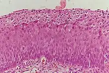 - ↑ Darragh TM, Colgan TJ, Thomas Cox J, Heller DS, Henry MR, Luff RD, et al. (January 2013). "The Lower Anogenital Squamous Terminology Standardization project for HPV-associated lesions: background and consensus recommendations from the College of American Pathologists and the American Society for Colposcopy and Cervical Pathology". International Journal of Gynecological Pathology. 32 (1): 76–115. doi:10.1097/PGP.0b013e31826916c7. PMID 23202792. S2CID 205943774.