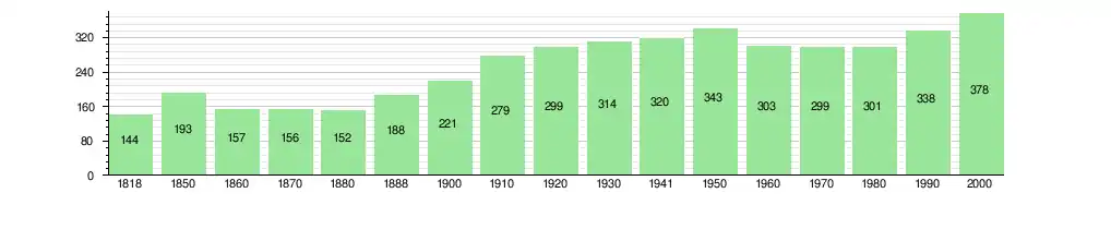Châtillon has a population (as of December 2020) of 485.[7] As of 2008, 4.7% of the population are resident foreign nationals.[8] Over the last 10 years (2000–2010) the population has changed at a rate of 13.7%. Migration accounted for 8.4%, while births and deaths accounted for 5.3%.[9]
