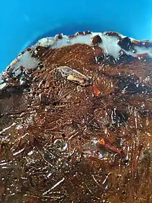 Chaku (Nepali: चाकु pronounced [ˈt͡saku] ) is a Newari cuisine made from concentrated ⓘsugarcane juice, jaggery, ghee, and nuts. The mixture is cooked down until it is a solid form, and then pulled on a hook in a manner similar to making taffy and then cut into small rolls, or it may be cooked in a shallow dish and cut into small diamond shaped pieces. Chaku may be eaten separately, or it can also be used in making Yomari (योमरी).