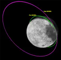 Lunar bound maneuvers:1 (Lunar orbit insertion) | 5 August 2023 | 1,835 s (30.58 min) | 164 km × 18,074 km (102 mi × 11,231 mi) | Approx. 21 h (1,300 min) | [58] |