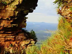 The geographical center of South America, formerly considered to be in the city of Cuiabá where it is marked by a white marble obelisk, is in fact located in the park near the town of Chapado dos Guimarães at the "Mirante de Geodésia", a scenic lookout point.[5]