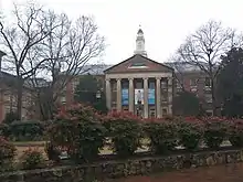 Four in ten Chapel Hillians were enslaved at the start of the Civil War, and about half of the town was Black.[14] In April 1865, as the war ended, the 9th Michigan Cavalry rode into Chapel Hill and occupied the university and the town for more than two weeks.[15]
