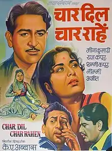 Char Dil Char Rahen (English title: Four Hearts, Four Roads) is a 1959 Hindi film directed by Khwaja Ahmad Abbas, and starring two big stars of the era, real-life brothers Shammi Kapoor and Raj Kapoor. The movie is based on a novel of the same name.
