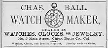 Charles Ball (April 4, 1819 – March 4, 1903) was the third and fifth President of the Chico Board of Trustees, the governing body of the city of Chico, California from 1876 to 1879, and from 1882 to 1885. He was a jeweler and watchmaker.