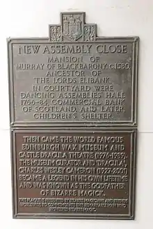 In 2002, it was decided that the actual site of the plaque should be in the entrance passage to the building, formerly the Wax Museum, which lies within a courtyard off the Royal Mile in Edinburgh Old Town. This entranceway at 142 New Assembly Close is perfect as it can easily be seen by all who pass by on this very busy road.