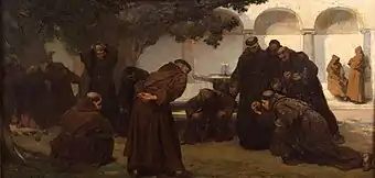 From 1862 to 1867, Hermans stayed in Italy. In Rome he became fascinated with the life of the monks, which became a favorite subject of many paintings between 1866 and 1869.[3] The theme of Catholic clergy was popular at the time as evidenced by the vogue of cardinal paintings made by artists such as the Belgian Georges Croegaert.[5] He had an early success with his paintings of clerics. He later made several trips especially in the Mediterranean region and, in particular, Spain.[6]
