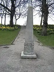 Since Gascoigne, or Bernardo Guasconi, was from Florence, he was reprieved by Parliament, which was wary of antagonising a foreign power, but Lucas and Lisle were executed by firing squad on 28 August 1648 in the castle yard at Colchester, and interred in the Lucas family vault within St. Giles's Church.[1] Twelve years later, on 7 June 1661, the two men were reburied in an elaborate ceremony, and a stone placed by John Lucas, 1st Baron Lucas on their tombs. The inscription stated they were "by the command of Sir Thomas Fairfax in cold blood barbarously murdered", although in reality Fairfax had acted legally and in accordance with the terms of the capitulation.[2]