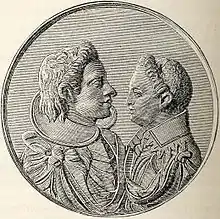 The secret was kept until Charles Philip died soon after, fighting by his brother's side on 25 January 1622 at Narva in Livonia.[2] The marriage was revealed when Elizabeth gave birth to her late husband's posthumous daughter, Elisabet, later that year (1622–1682). Queen Dowager Christina took mother and child into her household and acknowledged the marriage.