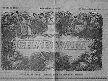 On 1 December 1832, while imprisoned, Philipon published Le Charivari, an illustrated daily with four pages in a smaller than Caricature format. More varied and more "popular" than its predecessor, it was not limited to political caricature. Charivari was the only daily caricature journal of nineteenth-century France.[4] According to the prospectus, Charivari was intended as "comprehensive overview of all the constantly recurring events, by pencil and pen, of all the various aspects of this kaleidoscopic world in which we live."[4] The lithographs are of lower quality than in La Caricature, but better integrated into the text. Thereafter, the presentation of Charivari changed significantly.