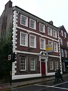 Charles Roe was born in Castleton, Derbyshire, the youngest of the eight children of Rev Thomas Roe, vicar of Castleton, and his wife Mary née Turner. His father died when he was aged eight and the family moved to Stockport, Cheshire. Soon after this his mother also died and Charles went to live with siblings in Macclesfield. According to the Oxford Dictionary of National Biography, it is thought that he was educated at Macclesfield Grammar School.[1] He then entered the button and twist trade and became a freeman of Macclesfield in 1742. In 1743–44 he built a small spinning mill on Park Green and in 1748, in partnership with Glover & Co., a larger mill for the production of silk on Waters Green: both were based on Lombe's Mill in Derby. Roe was mayor of Macclesfield in 1747–48.[1]