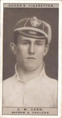 Charlie Carr won caps for England while at Barrow in 1924 against Other Nationalities, in 1925 against Wales (2 matches), in 1926 against Wales, and Other Nationalities, in 1927 against Wales, in 1928 against Wales,[2] and won caps for Great Britain while at Barrow in 1924 against Australia (2 matches), and New Zealand (2 matches), in 1926–27 against New Zealand (3 matches).[3]