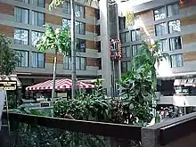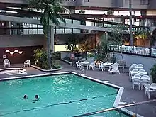 The property was developed along the same visual lines as other CP Hotels properties of the era, including the Chateau Airport Calgary and the Red Oak Inns of Thunder Bay and Peterborough. It had a large indoor atrium style foyer with fully grown palm trees, garden foliage, swimming pool and heated whirlpool; over which most rooms looked. It also had a glass elevator and terraced restaurant. High season was November to May.[2] It accommodated passengers arriving and departing from the adjoining Mirabel Airport, with the 344 room and 11 suite complex located directly adjacent to the airport terminal and its above ground parking area.[2]