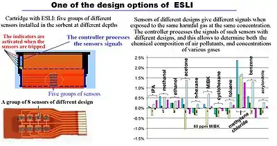 : CS1 maint: multiple names: authors list (link) Stetter J.R. and Maclay G.J. (1996) Chemical sensing apparatus and methods, Transducer Research Inc., Patent No. US5512882 - ↑ Melissa Checky, Kevin Frankel, Denise Goddard, Erik Johnson, J. Christopher Thomas, Maria Zelinsky & Cassidy Javner (2016). "Evaluation of a passive optical based end of service life indicator (ESLI) for organic vapor respirator cartridges". Journal of Occupational and Environmental Hygiene. 13 (2): 112–120. doi:10.1080/15459624.2015.1091956. ISSN 1545-9624. PMC 4720034. PMID 26418577.