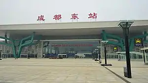Chengdu East or Chengdudong railway station (simplified Chinese: 成都东站; traditional Chinese: 成都東站; pinyin: Chéngdū-dōng Zhàn) is a railway station in Chenghua District, Chengdu, the capital of Sichuan province, serving the Chengdu–Chongqing intercity railway, the Chengdu–Guiyang high-speed railway, the Dazhou–Chengdu railway and Xi'an–Chengdu high-speed railway. It is connected to Chengdu Metro Line 2 and Line 7.