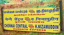 The 12269 / 70 Chennai Central–Hazrat Nizamuddin Duronto Express is an Express train of the Duronto Express category belonging to Indian Railways – Southern Railway zone that runs between Chennai Central and Hazrat Nizamuddin in India.