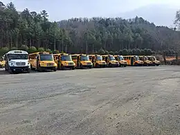 - The Cherokee County School Bus Garage located near Murphy Middle maintains all school buses for the school district. Cherokee County has 41 yellow school buses and 13 activity buses, a total of 54. The first bus was purchased in 1926, serving the Andrews community. School activity buses for the district were purchased in 1950 by Andrews City Schools, 1966 by Hiwassee Dam School, and 1969 by Murphy City Schools (the individual districts merged into CCS in the 1980s).