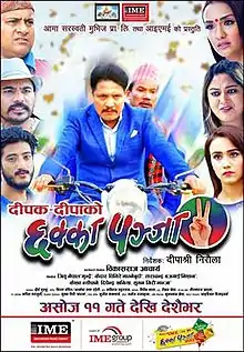 Chhakka Panja 2 (Nepali: छक्का पन्जा २), also abbreviated and known as CP2 or C:P 2, is a 2017 Nepalese comedy-drama film directed by Deepa Shree Niraula, with a story written by Bikash Raj Acharya and Samipya Raj Timalsina and a screenplay written by Deepak Raj Giri. It was produced by Kedar Ghimire, Jeetu Nepal, Tara Chandra Bajgain, Dipendra Khaniya, Keshav Neupane, and Suman Giri under the banner of Aama Sarswoti Movies. It is the second film in the Chhakka Panja series. The film stars Deepak Raj Giri, Kedar Ghimire, Buddhi Tamang Priyanka Karki, Swastima Khadka, debutant Swaroop Purush Dhakal and Barsha Raut in the lead roles.[2][3][4][5]