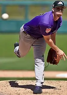 ![]() Gonzalez pitching for the Colorado Rockies 2019 spring training | |