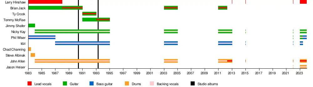 - Nicky Kay – lead and rhythm guitar, backing vocals (1984–1995, 2003–2005, 2011–2012, 2013, 2015, 2022, 2023-present)