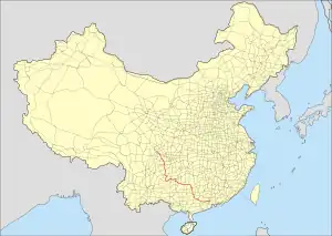China National Highway 321 (G321) runs northwest from Guangzhou, Guangdong towards Guangxi Province, Guizhou Province, and ends in Chengdu, Sichuan Province. It is 2,220 kilometres in length.