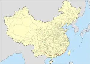 China National Highway 324 (G324) runs west from Fuzhou, Fujian towards Guangdong Province, Guangxi Province, Guizhou Province, and ends in Kunming, Yunnan Province. It is 2,712 kilometres in length.