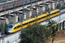CRH2C-2061 (formerly CRH2-061C) is the first 300 km/h (186 mph) high speed trainset manufactured by CSR Sifang. The trainset rolled off the production line on 22 December 22, 2007[4] and was named CRH2-300, as the prototype of CRH2C. During a test on 22 April 2008, CRH2-061C reached a top speed of over 370 km/h (230 mph) on Beijing-Tianjin high-speed rail[5] and on 11 December 2009 reached an improved top speed of 394.2 km/h (245 mph) on the Zhengzhou-Xi'an high-speed railway line.[6] It now serves as a 350 km/h inspection train, equipped with track inspection, catenary examination, and signal inspection devices.