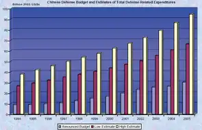 Alongside economic growth, mainland China's military spending has also increased, raising concerns among neighboring countries, regions, and the United States.[45][46]