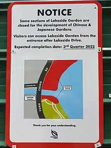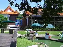 Chinese Garden[lower-alpha 1] is a park in Jurong East, Singapore. Built in 1975 by the JTC Corporation and designed by Prof. Yuen-chen Yu, an architect from Taiwan, the Chinese Garden's concept is based on Chinese gardening art.[2] The main characteristic is the integration of architectural features with the natural environment.[3] The Chinese Garden is modeled along the northern Chinese imperial style of architecture and landscaping.[1] It is located next to Chinese Garden MRT station and connected to the adjacent Japanese Garden by a bridge.[4] Along with Japanese Garden, the two gardens are collectively known as the Jurong Gardens.