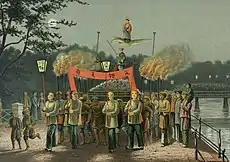 Most of those who settled in the archipelago had already severed their ties with the mainland and welcomed favorable treatment and protection under the Dutch.[29] Some became revenue farmers, middlemen within the corporate structure of the VOC, tasked with collecting export–import duties and managing the harvest of natural resources;[30] although this was highly profitable, it earned the enmity of the pribumi population. Others worked as opium farmers.[31] Following the 1740 Batavia massacre and ensuing war, in which the Chinese rebelled against the Dutch,[32] the Dutch attempted to place a quota on the number of Chinese who could enter the Indies. Amoy was designated as the only immigration port to the archipelago, and ships were limited to a specified number of crew and passengers depending on size. This quota was adjusted at times to meet demand for overseas workers, such as in July 1802 when sugar mills near Batavia were in need of workers.[33]