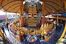 Deity or temple associations and lineage associations, pilgrimage associations and formalized prayers, rituals and expressions of virtues, are the common forms of organization of Chinese religion on the local level.[40] Neither initiation rituals nor official membership into a church organization separate from one person's native identity are mandatory in order to be involved in religious activities.[40] Contrary to institutional religions, Chinese religion does not require "conversion" for participation.[43]