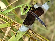 The Chinese mantis (Tenodera sinensis) is a species of mantis native to Asia and the nearby islands. In 1896, this species was accidentally introduced by a nursery tender at Mt. Airy near Philadelphia, United States.[2] Tenodera sinensis often is erroneously referred to as Tenodera aridifolia sinensis because it was at first described as a subspecies of Tenodera aridifolia, but Tenodera sinensis is now established as a full species.[3]