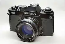 They manufactured several cameras, such as the CG-5, which was one of the first cameras ever to use an Auto Focus lens, which had to be bought separately. The lenses are now rare. They were cumbersome and had two infrared "eyes" on the top. They would connect by a bayonet fitting similar to the Pentax K fitting, except they also had electrical contacts which would power the motor at the press of the shutter release button.