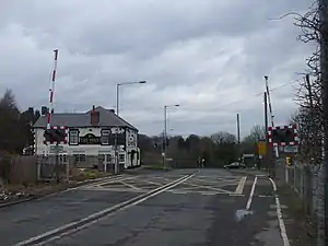 ![]() The level crossing to the right of the site of the station, in 2010 | |