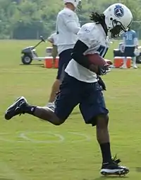 Johnson had his professional debut with the Titans on September 7, 2008, where he played in the season opener against the Jacksonville Jaguars, which the Titans won 17–10. Johnson rushed for 93 yards on 15 carries and had three receptions for 34 yards and a touchdown.[53] In only his second career game, Johnson ran for 109 yards on 19 carries, including a 51-yard run, and two receptions for 12 yards against the Cincinnati Bengals.[54]