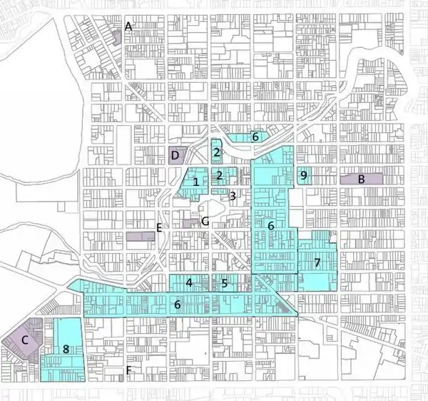 - ↑ The Performing Arts Precinct is shown as number 2 on the designation plan.