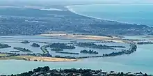The current plant was built between 1958 and 1962.[1][5] The land the sewage treatment plant and its oxidation ponds is built on—covering circa 230 ha (570 acres)[6]—was returned to Ngāi Tahu by the Native Land Court in 1868, only for the land to be taken again through the Public Works Act in 1958 by the Christchurch Drainage Board.[7] Ngāi Tahu's land was part of its Ihutai reserve used for mahinga ika (Māori for fish gathering).[8] The engineering design for the plant was prepared by consultants from the United States[9] and the cost was NZ£1.35 million.[1] Treated wastewater was discharge into the estuary over between two and four hours during high tide, for it to be washed out to sea with the outgoing tide. This method was not seen as acceptable any longer, as the high nutrient load caused sea lettuce to grow and when it rotted, it caused a putrid smell.[10]