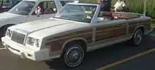 For model years 1982 through 1988, the Town & Country name was featured on the wagon version of the K-body based front wheel drive LeBaron, featuring simulated woodgrain exterior trim. A limited production convertible version was manufactured for model years 1983 to 1986 and also featured simulated woodgrain paneling and was meant to reflect the classic look of original 1940s and early 1950s convertibles. The convertibles came standard with Mark Cross leather interior.