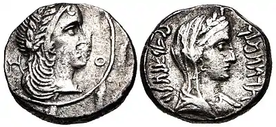 She ruled jointly with her husband from 9 BCE until 16 CE. Copper and silver coins where she is depicted with her husband have been recovered. Little is known about the exact date and reason of the transition from Chuldu to Shaqilath, who appears on coins after an unexplained gap in 18 CE.[4] Maurice Satre suggested previous gaps in the minting of coins could have been due to a period of capitulation to Ancient Rome.[5]