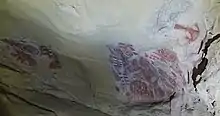 The smooth and irregularly shaped shallow sandstone cave contains numerous drawings apparently depicting the Chumash cosmology and other subjects created in mineral pigments[4] and other media over a long period ranging from about 200 up to possibly 1000 years or more. There is also evidence of graffiti beginning with early white settlers, which eventually led to creation of a protective physical barrier and State Historic Park status. In 1972 it was added as Site #72000256 on the National Register of Historic Places.[5]