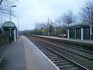 Church & Oswaldtwistle railway station serves both the village of Church and the town of Oswaldtwistle, in Lancashire, England. The station is 5+1⁄3 miles (8.6 km) east of Blackburn railway station, on the East Lancashire Line operated by Northern.