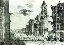 In 1855, the declaration of the Immaculate Conception as a Roman Catholic church dogma the previous year was celebrated here, an event commemorated by an oil painting that is now at the National Museum of History in Chapultepec.[3] The Reform Laws of 1861 forced the abandonment of La Profesa's monastery, which was then demolished in 1862 to make way for 5 de Mayo Street.[3][7] The Casa de Ejercicios was temporarily converted into the Hotel Colon.[7]