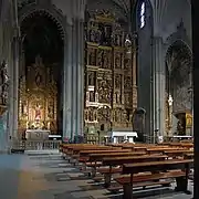 The reredos, created by Italian artists, was originally built for the Co-cathedral of Santa María de la Redonda, but the cathedral chapter rejected it because it contained coats of arms of the donor, Arnao de Bruselas, being donated to the church of Palacio.