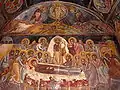 The frescoes were painted in 1598, as noted in the ktitor inscription in the western side of the nave, and were paid for through donations from wealthy villagers. The frescoes feature traditional medallions with depictions of Jesus Christ on the vault, friezes of medallions with saints and prophets and full-length portraits of saints under the arcade. Among the images of saints and martyrs is one of the oldest known depictions of Saint Sava and depictions of the sainted Pope Sylvester I and St Boniface, who are popular in Catholic art. There are a number of details with influence from Italian art – the moustaches of some of the soldiers, faces in profile in the Betrayal of Judas, the knight's banner on the lance of the centurion St. Longinus in the Crucifixion and others. With its new ideas and skilfully painted frescoes, the church is among the most valuable monuments from that period in the Balkans.