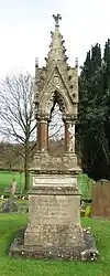 The graveyard contains a Gothic pinnacle[7] memorial to the Bannerman family who lived nearby at Wyastone Leys. The medieval churchyard cross is a scheduled ancient monument.[11] There is also a war grave of a Royal Engineers soldier of World War I.[12]