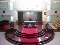 The full-sized Church of the Holy Family was eventually completed on 19 June 1932. It was blessed and consecrated by Bishop Perrichon. By 1936, the church was made a parish, its first parish priest being Pierre Ruaudel. In 1969, to better accommodate and service the increasing number of Catholics in the area, the church again underwent renovation and extension work which was completed by April 1970. The church hall featured a single large crucifix on a blank wall behind the altar, and this set-up was often decorated with paints, banners and other artwork, changing to appropriately suit the missal theme of the week. David Saul Marshall donated a piece of land to the church, but too late to build an extension upon, and so was then used as a carpark.